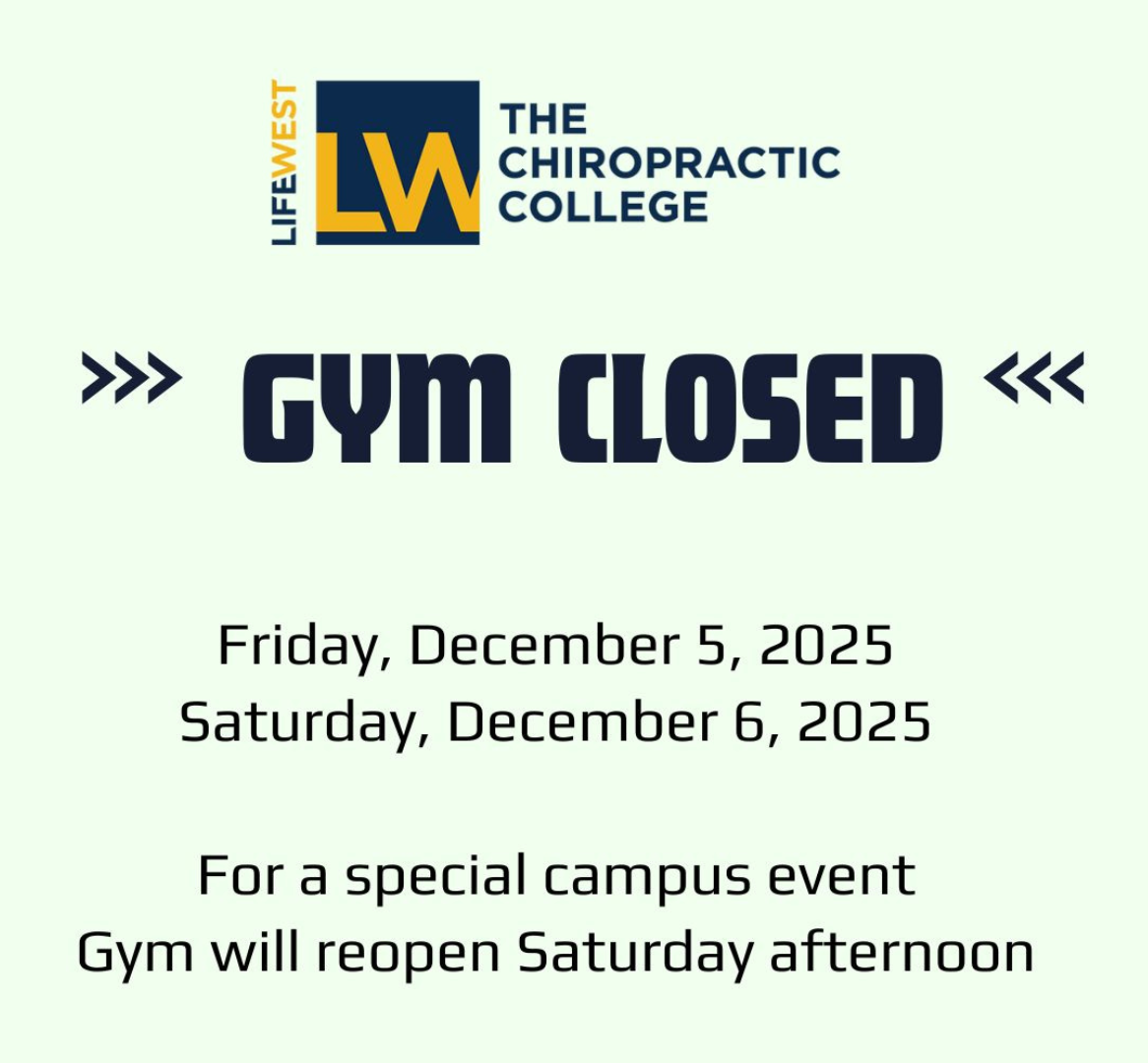 Please take note: the Gym will be closed on Dec. 5th and 6th