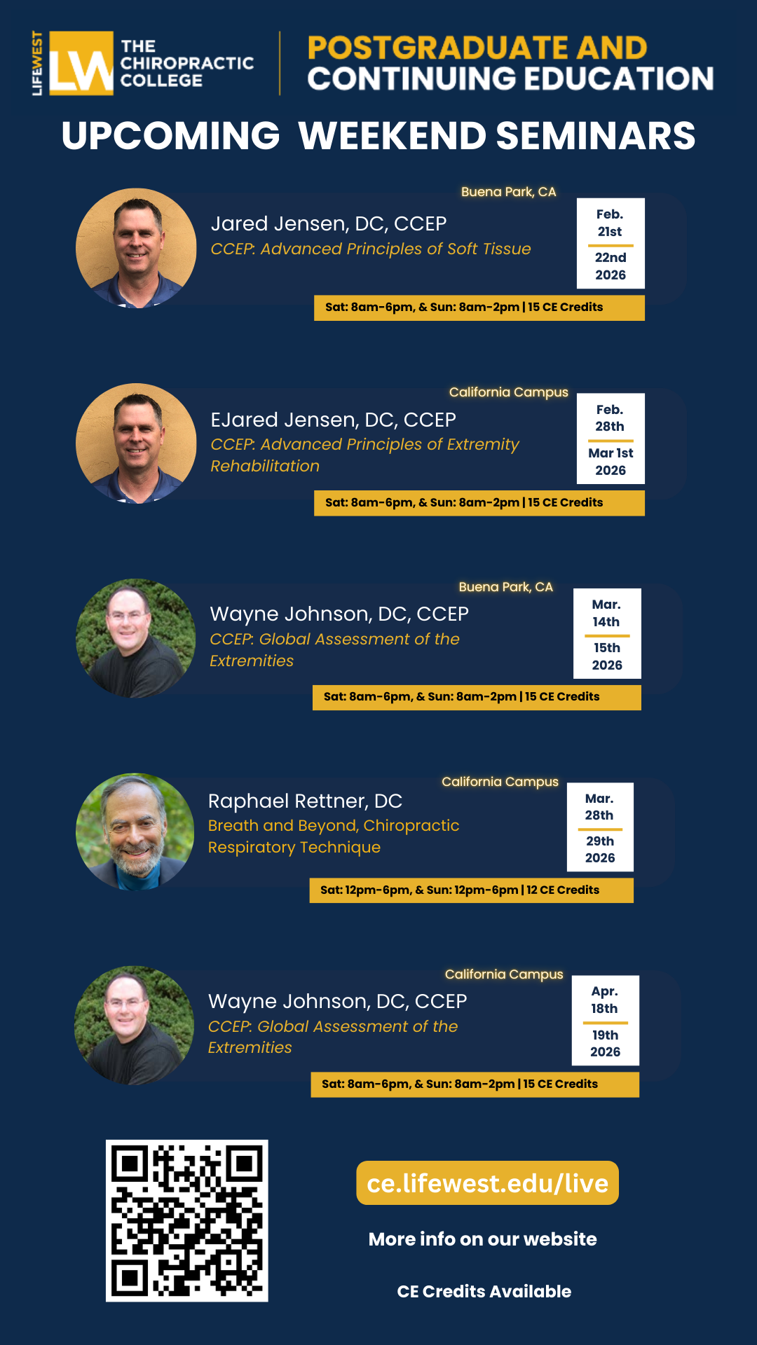 Don't miss these amazing seminars coming to Life Chiropractic College West in 2026.