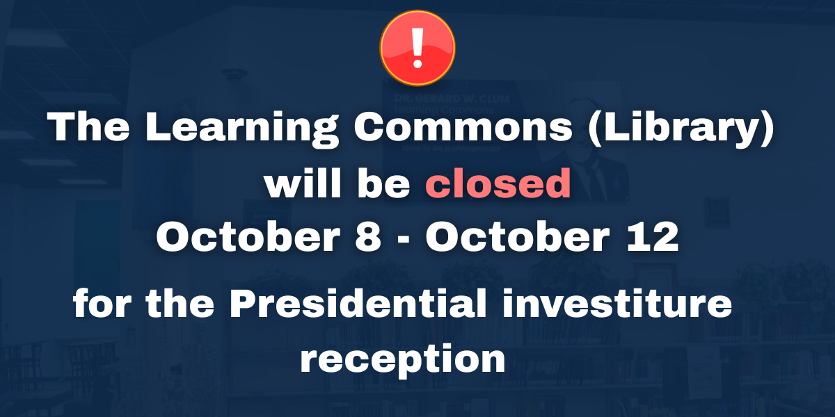 The Learning Commons (Library) will be closed October 8 - October 12 for the Presidential Investiture reception