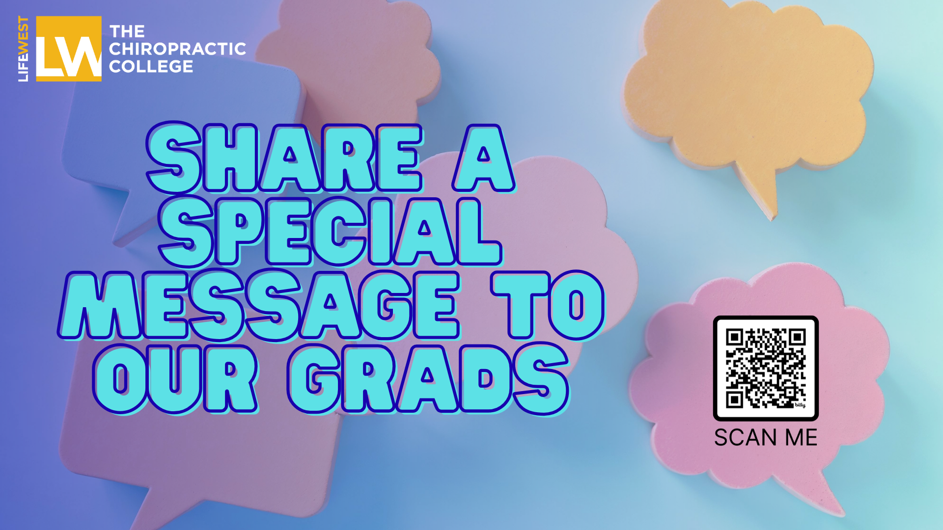 We would love to send out messages for our grads and display it on the Jumbotron on campus during the week of commencement and finals week (December 8-18). Just scan the QR code to fill out the form. SUBMISSIONS DUE by DEC. 4th.