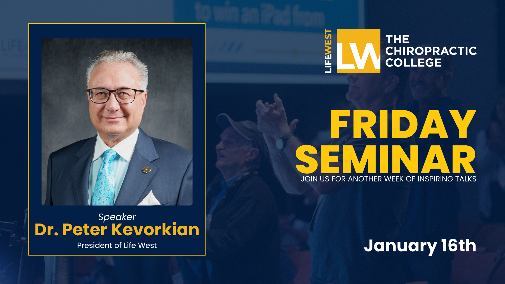 Life West's Dr. Peter Kevorkian will be leading this Friday Seminar.