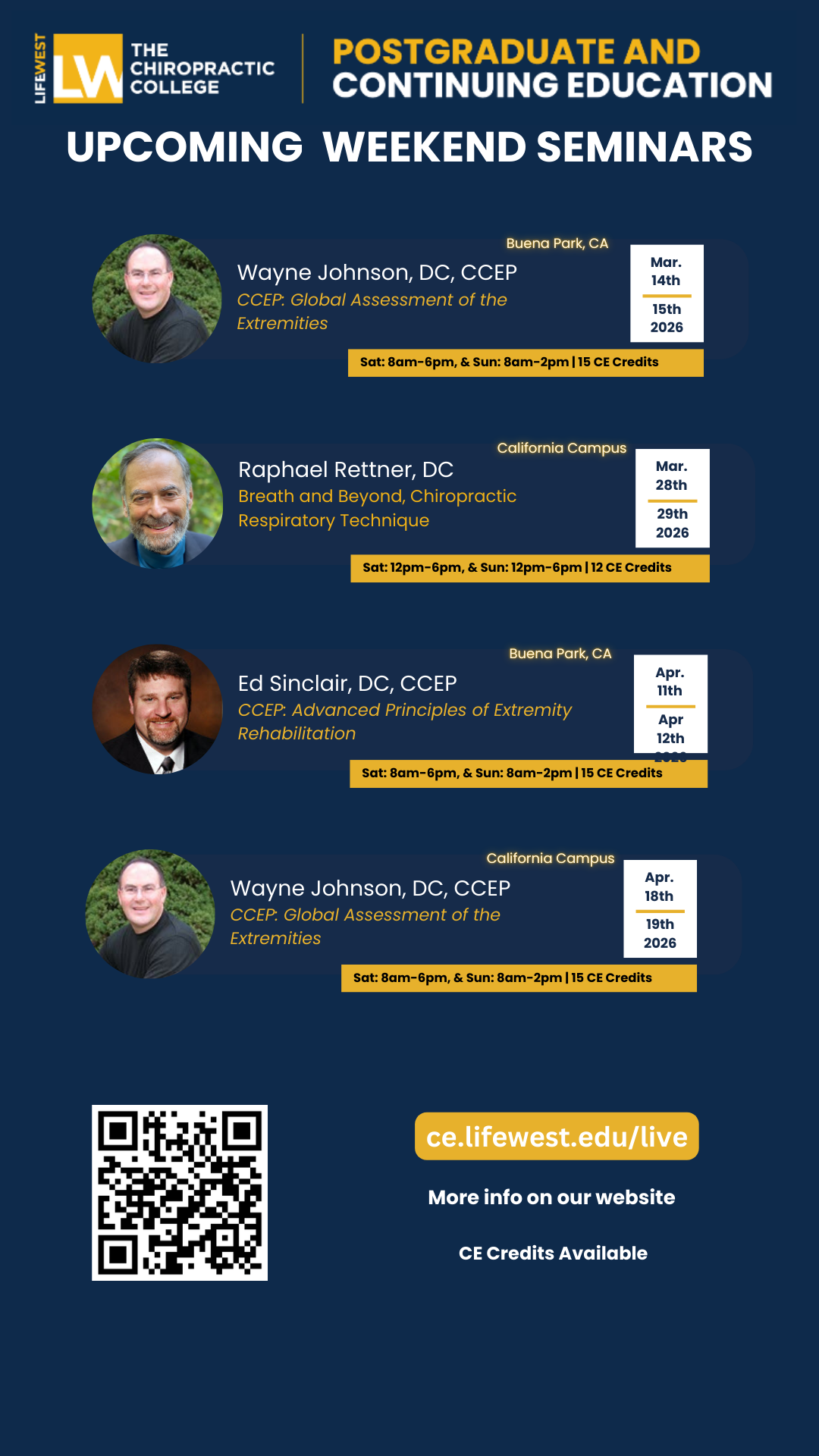 Don't miss these amazing seminars coming to Life Chiropractic College West in 2026.